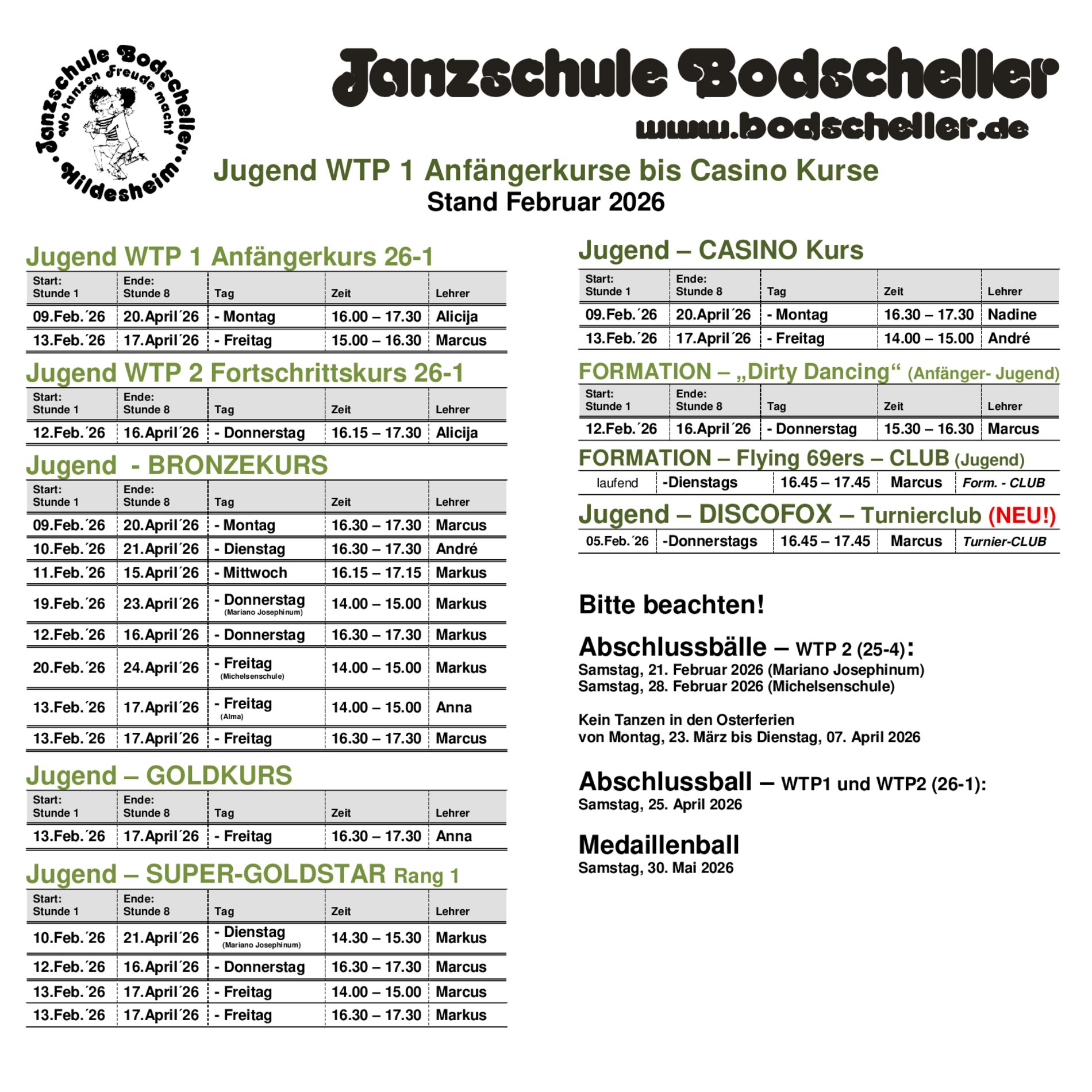 Tanztermin-Flyer für Jugend WTP 1 Anfänger-Kurse bis Jugend-Casino-Kurse